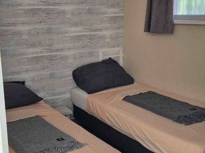 Wij hebben 1 heerlijke vakantie woning beschikbaar op Alpaca World Friesland. Bij goed weer lopen er alpaca's voor de vakantie woning. De woning is van alle gemakken voorzien, 2 slaapkamers, 1 op de begane grond (2 bedden van 80-200) en aan elkaar te schuiven voor een 160 bij 200 bed. Beneden een badkamer met 2 wastafels, toilet en douche. Met een steile trap naar boven staat op de overloop een 1 persoons bed, met een schuifdeur naar een ruime 2 persoons slaapkamer (180-200 bed). Boekt u het vakantiehuis dan zit er per persoon 1x een meet en Greet bij.